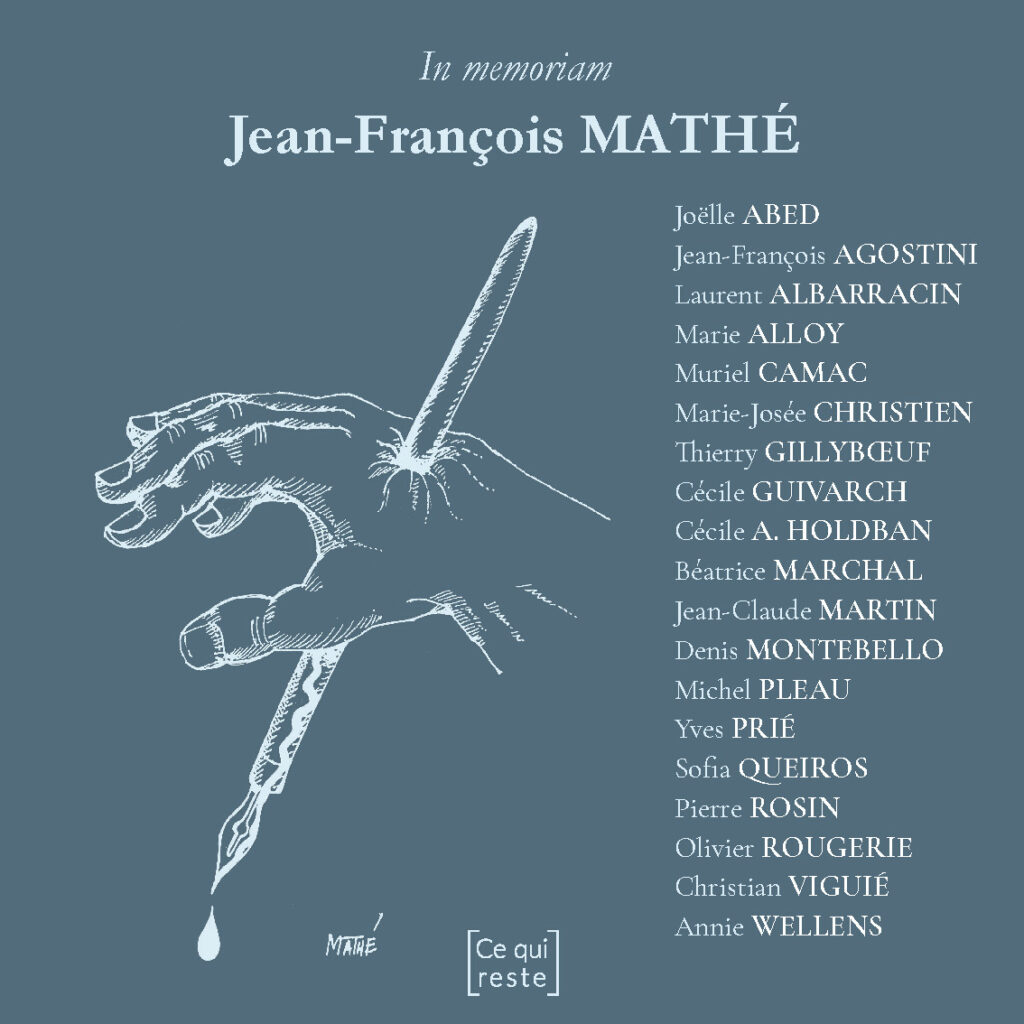 « Peut-être est-ce à cette nécessité d’une trace supplémentaire qu’ont répondu ces voix réunies ici, dont chacune a choisi un poème dans l’œuvre de Jean-François Mathé et y répond par un texte personnel. Par leur convergence, les témoignages ainsi recueillis attestent de l’unité de cette écriture qui est le propre des grands poètes. »